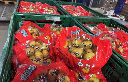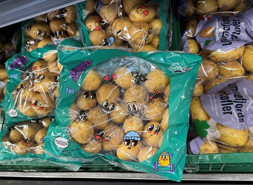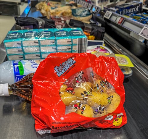 Kartofler fra Lammefjorden i de særlige poser til støtte for LykkeLiga.